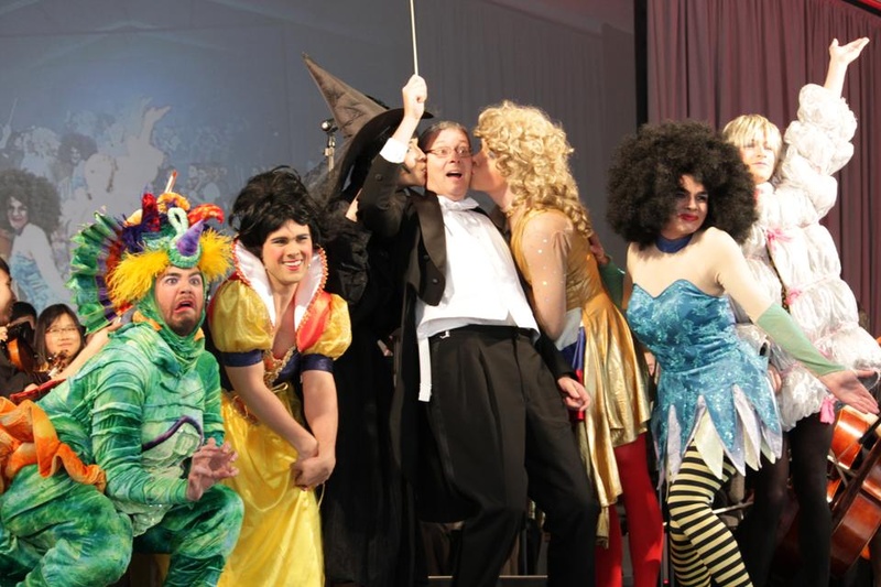 Economics 10 professor N. Gregory Mankiw (centre) is kissed by members of the Hasty Pudding Theatricals as he conducts the River Charles Ensemble as part of Harvard's Arts First Weekend on Saturday. Daniel J. Hilhorst
